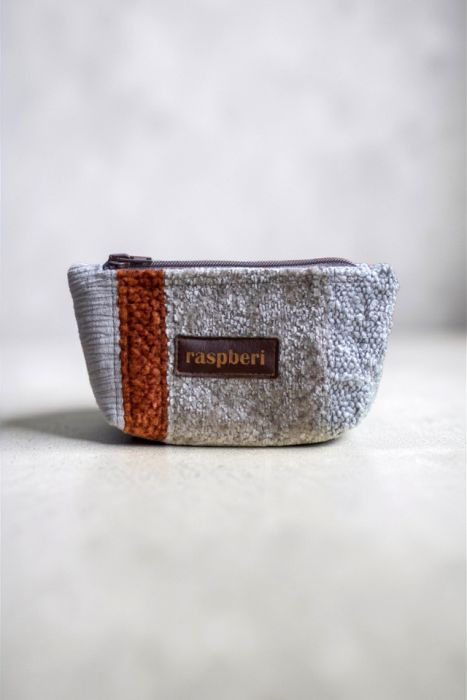 Kosmetyczka w rozmiarze MINI wykonana z kilku rodzajów tkanin. Stworzona w duchu no waste.