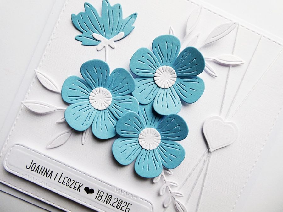 Zadaj pytanie dotyczące produktu: Minimalistyczna kartka ślubna biało-niebieska