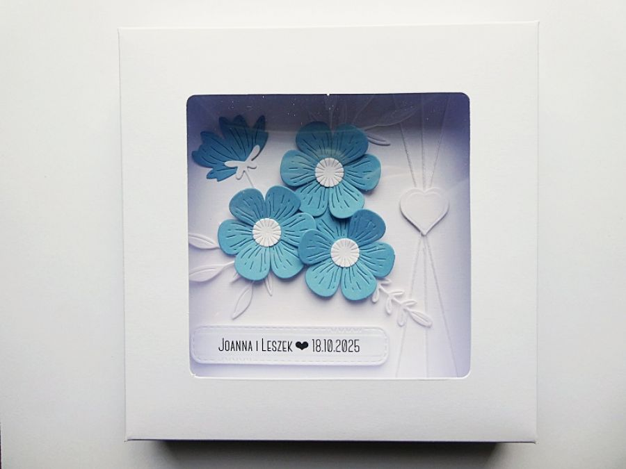 Dopełnieniem całości jest eleganckie pudełko z szybką, przez którą kartka jest pięknie wyeksponowana.