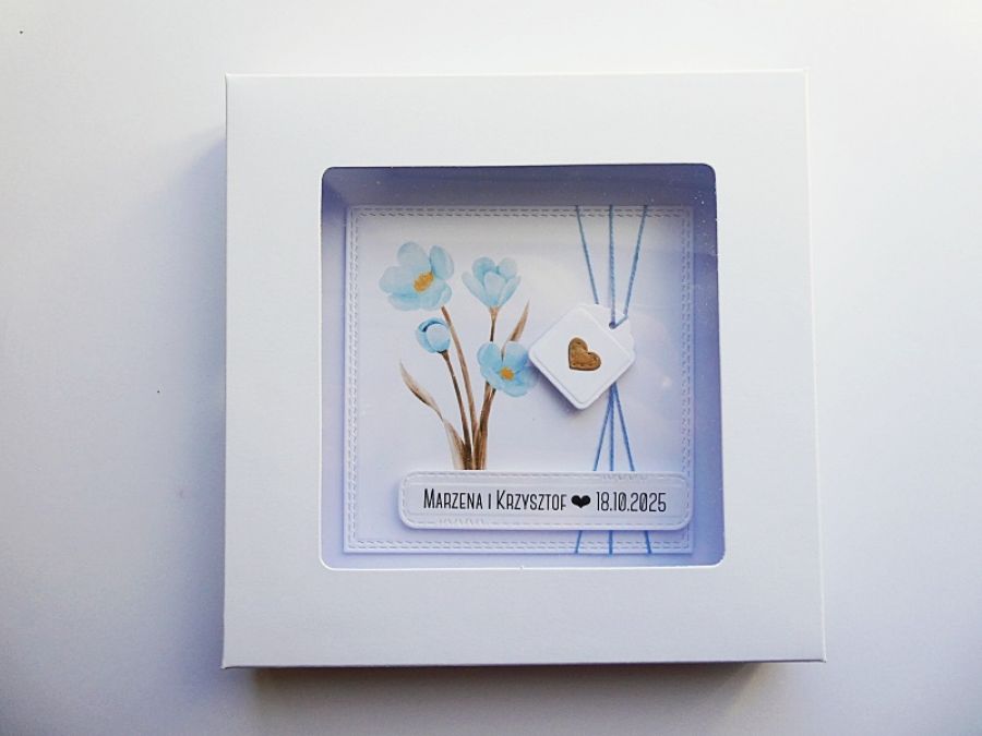 Cudny zestaw: pudełeczko, w którym jest kartka okolicznościowa i kopertka na pieniądze. Niezwykle starannie wykonane, estetyczne i eleganckie. Jestem bardzo zadowolona z zakupu!