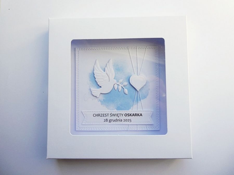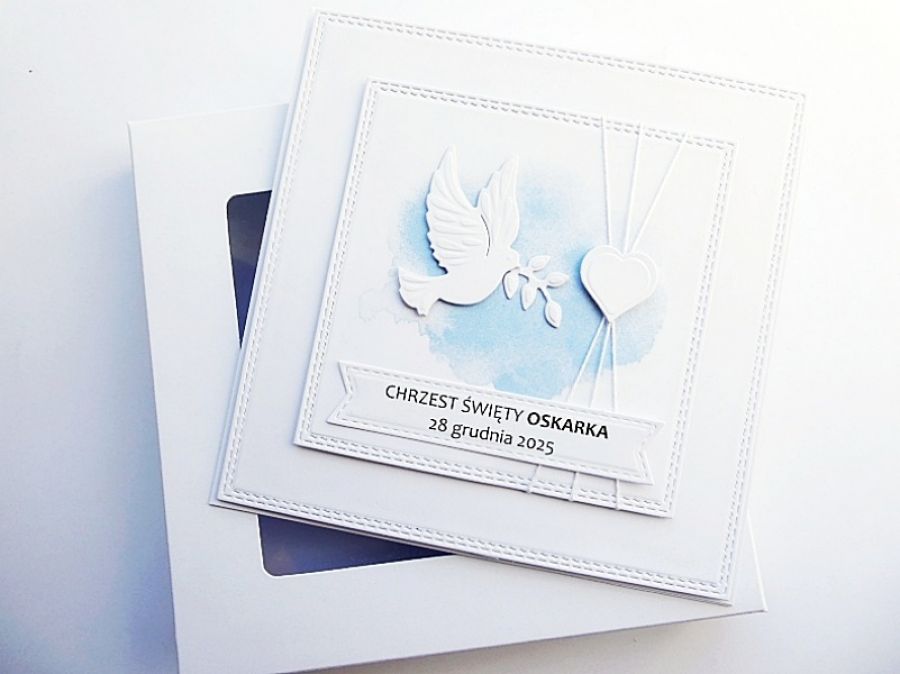 Zadaj pytanie dotyczące produktu: Minimalistyczna kartka z gołębicą na Chrzest