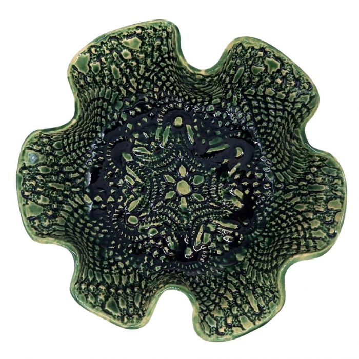 Ręcznie robiona miseczka ceramiczna to unikalny element dekoracyjny oraz praktyczne naczynie codziennego użytku. Została wykonana z najwyższej jakości ceramiki i wykończona szkliwem w głębokim odcieniu zieleni, które podkreśla artystyczny charakter produktu.
