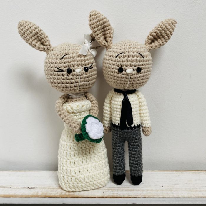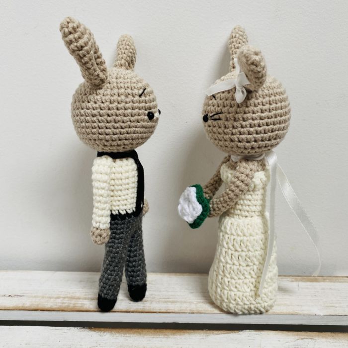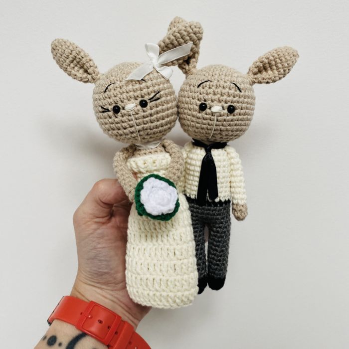 Zadaj pytanie dotyczące produktu: Młoda para króliczki szydełkowe prezent ślubny 4