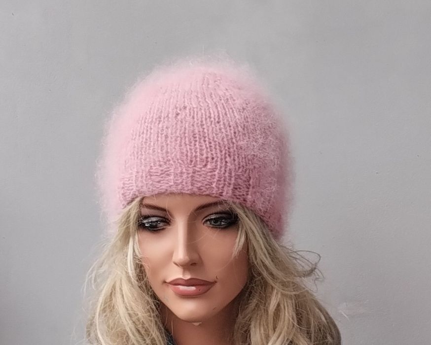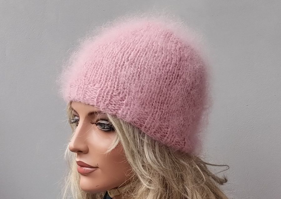 Nazwa produktu: Moherowa czapka w kolorze pudrowego różu