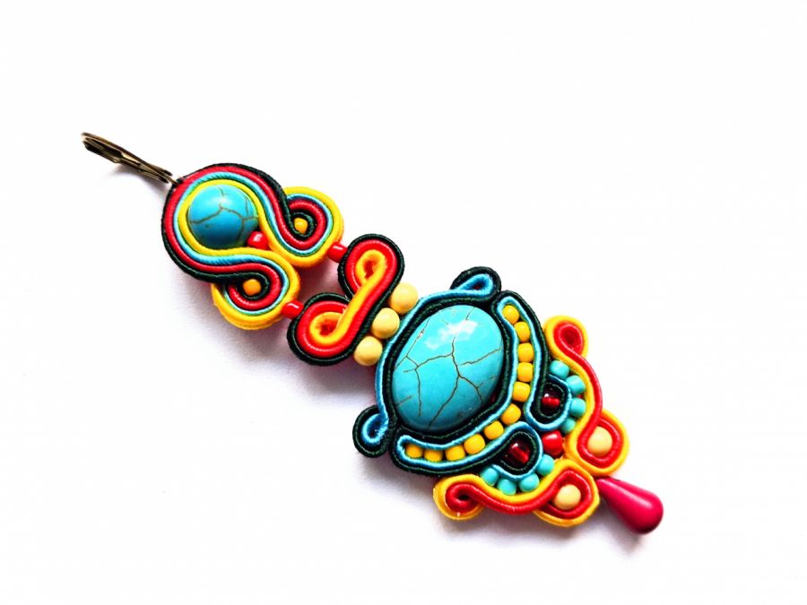 Kolczyki wykonane w modnej technice haftu sutaszowego. Jest ona pracochłonna, ale daje piękne efekty.