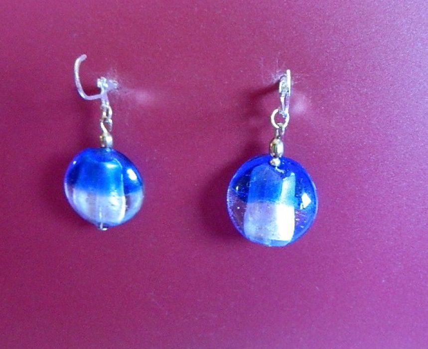 Zadaj pytanie dotyczące produktu: Murano, niebiesko białe, kobaltowe szkło weneckie, kolczyki, srebro
