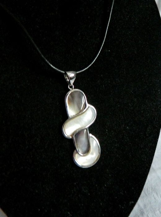 Jest to muszla abalone w oprawie z tybetańskiego srebra.