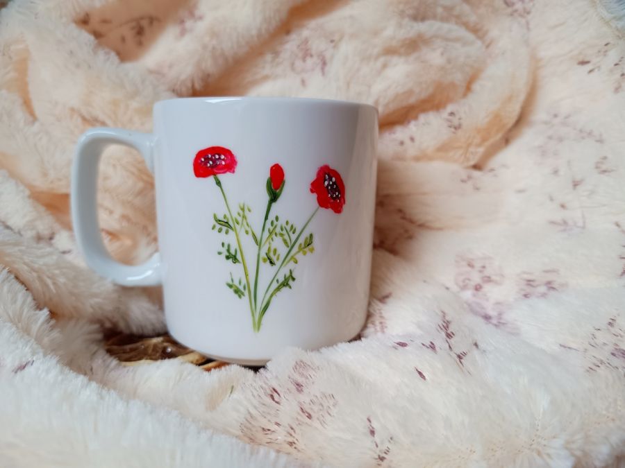 Kubek malowany wiele godzin z wielką troską o wszelkie szczegóły z miłości do natury, z miłości do tego co piękne i ulotne..
