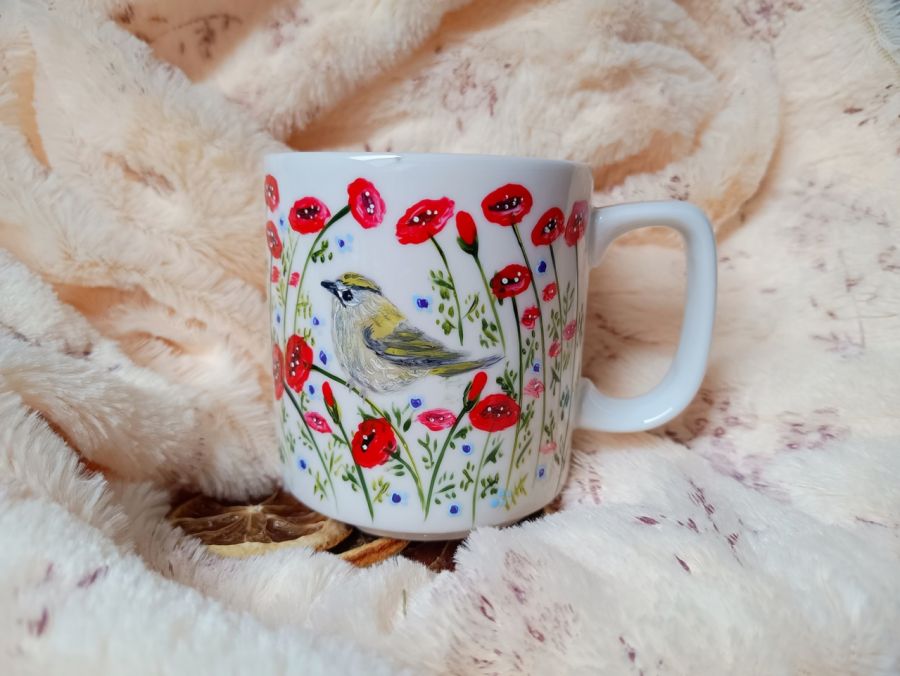 Zadaj pytanie dotyczące produktu: Mysikrólik wśród maków ręcznie malowany kubek 270 ml.