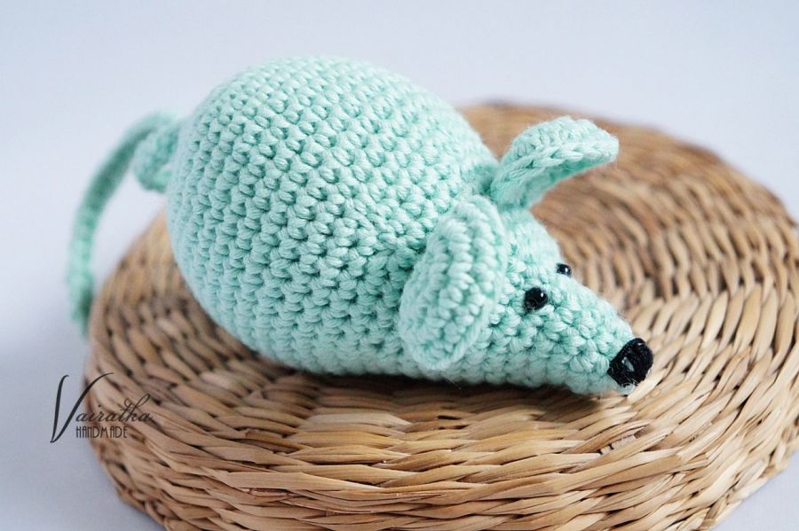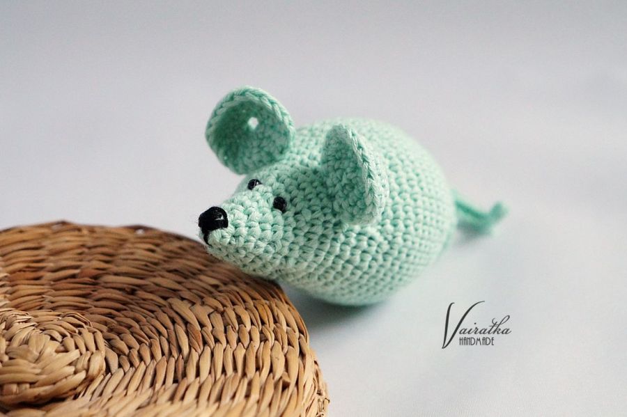 Urocza myszka wykonana ręcznie na szydełku z wysokiej jakości włóczki bawełnianej (nie mechaci się!). Wypełniona antyalergicznym wypełnieniem poliestrowym, wszystkie części ciała solidnie przyszyte, nosek wyhaftowany, oczy z koralików.