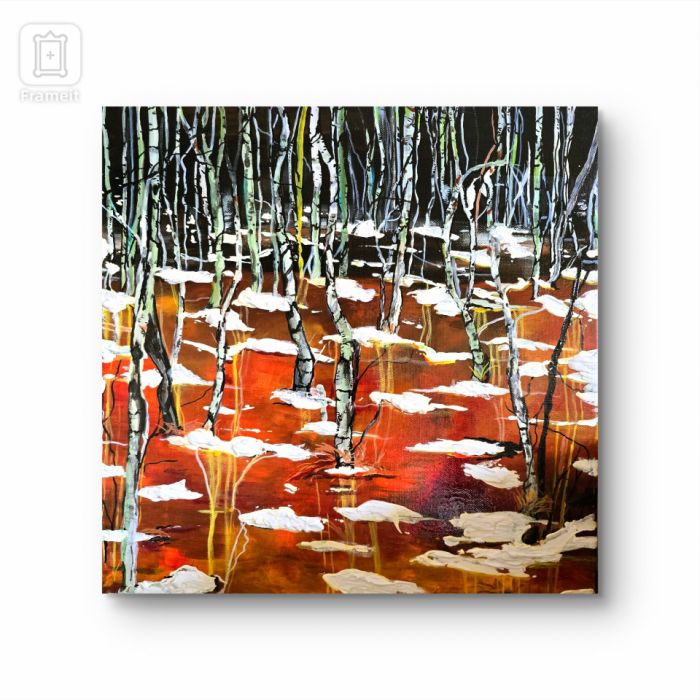 Obraz akrylowy ręcznie malowany na płótnie naciągniętym na drewniany blejtram.