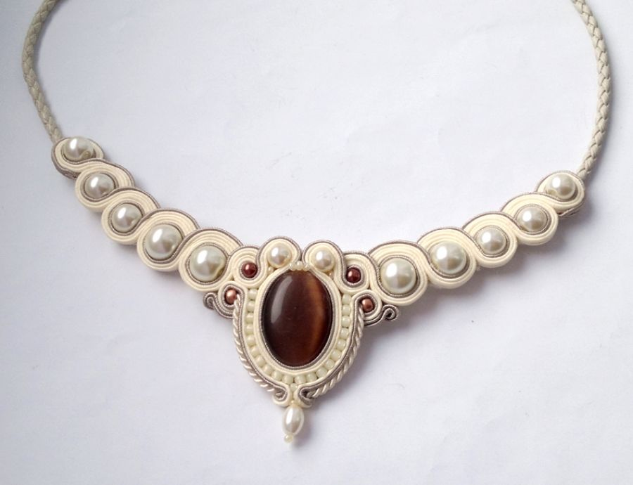 Piękny i efektowny naszyjnik został wykonany ręcznie pracochłonną techniką haftu sutasz. Robi wielkie wrażenie!