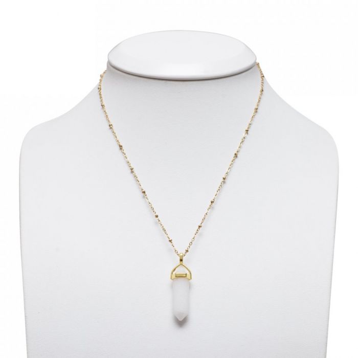 Wybierasz autentyczność i trwałość. Zawieszka z naturalnego Jadeitu w eleganckim, białym kolorze, jest idealnie szlifowana co podkreśla jego gładką, szlachetną powierzchnię. Łańcuszek to hipoalergiczna stal szlachetna , pokryta trwałym złoceniem, co zapewnia komfort i odporność na czernienie.