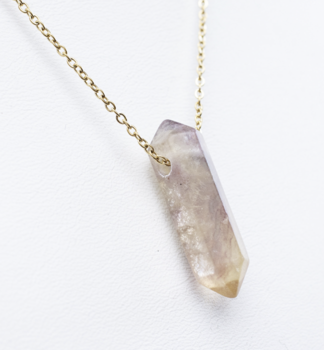 Odkryj "Prism Soul" – biżuterię, która celebruje bogactwo kolorów natury. Ten naszyjnik łączy w sobie surową formę krystalicznego grotu z finezyjnym blaskiem złota, tworząc osobisty amulet równowagi i spokoju.