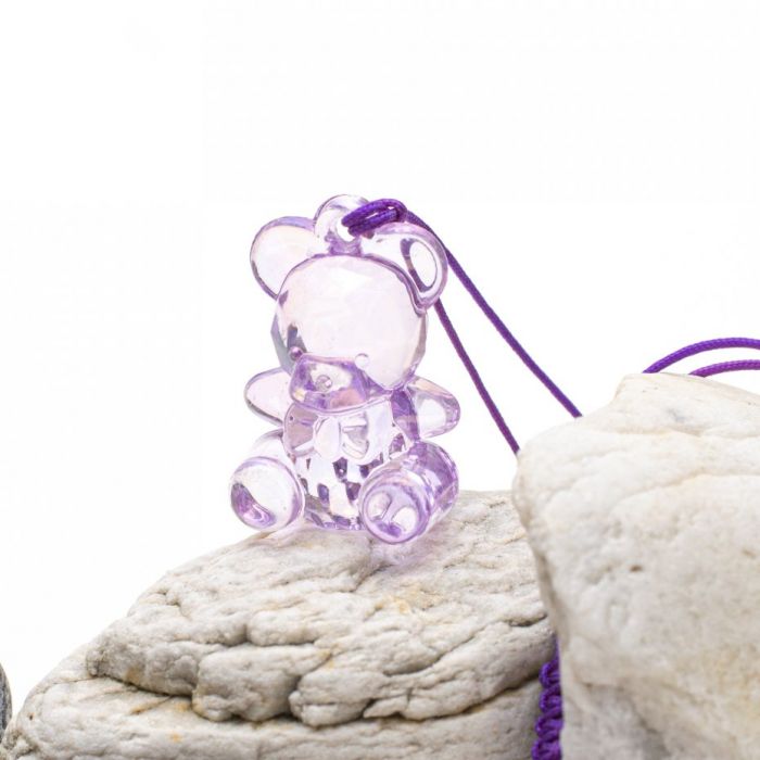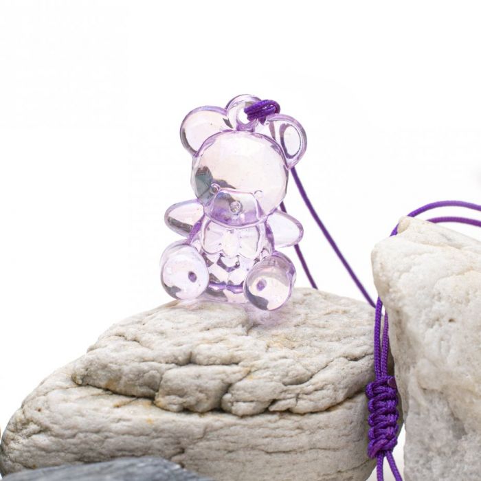 Pamiętasz pierścionki-misie, które były absolutnym hitem lat 90.? Ten uroczy miś, wykonany z fioletowego akrylu, to czysta nostalgia i radość. Noś go jako symbol beztroski, przyjaźni i kolorowej energii tamtej dekady. Wisi na wytrzymałym, fioletowym sznureczku, idealnie pasującym do stylu "babycore" i Y2K.