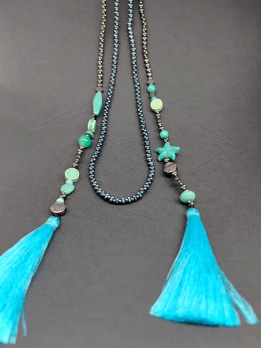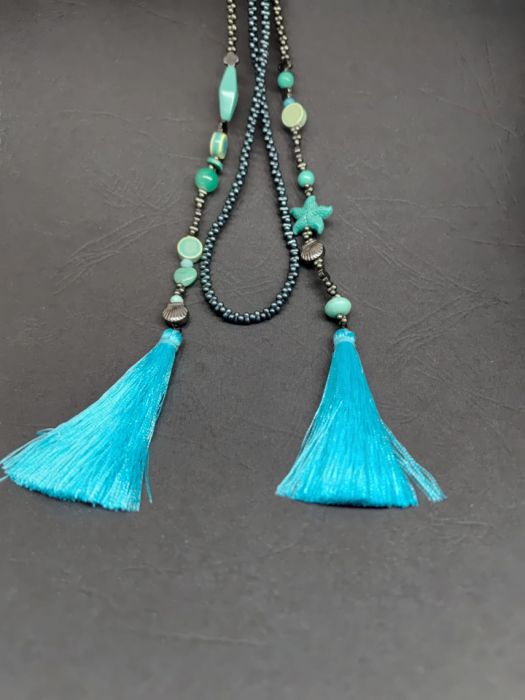 Naszyjnik Długi Sznur Turkusowa Rozgwiazda Z Chwostami