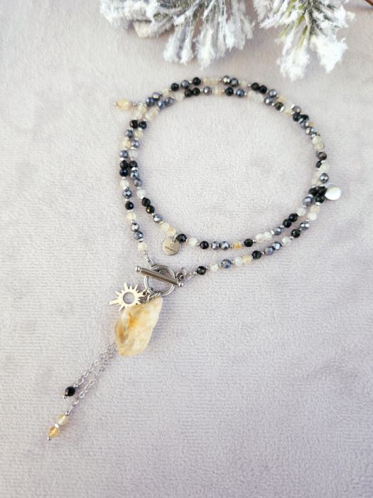 Cytryn, terahertz, turmalin, srebrny hematyt, srebrna stal