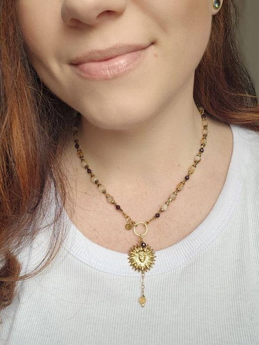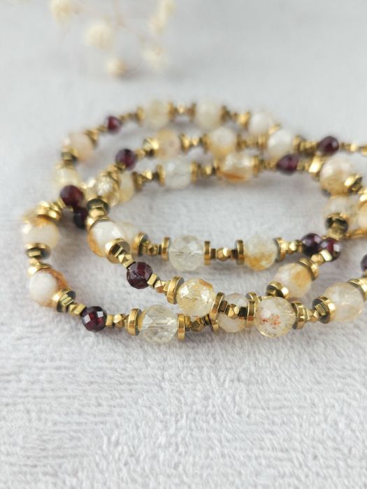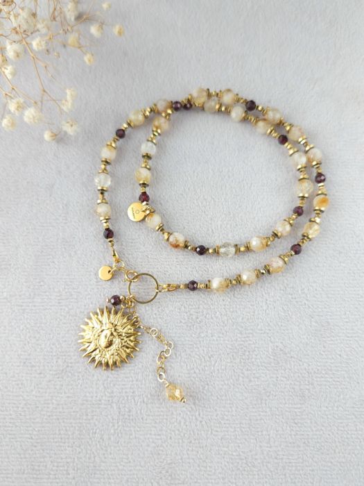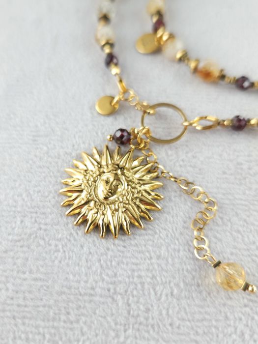 Naszyjnik z cytrynu, granatu, hematytu i stali