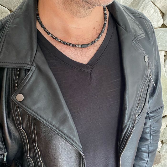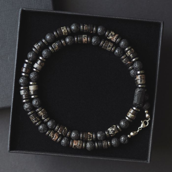 Zadaj pytanie dotyczące produktu: Naszyjnik męski lawa turmalin jaspis ltj55