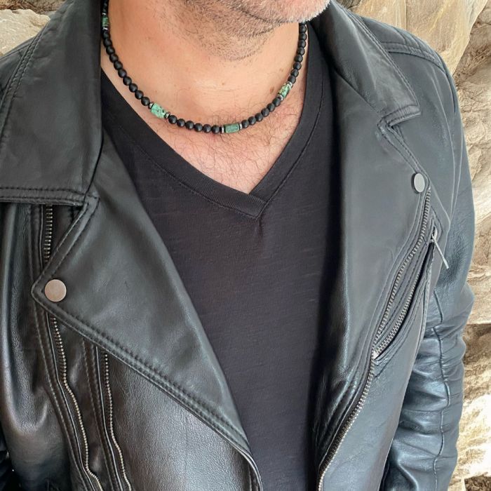Koraliki męskie na szyję z kamieniami onyksu i turkusu