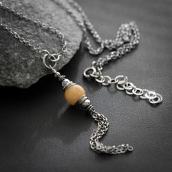 Naszyjnik, wykonany ze srebra próby 925, oksydowanego (przyciemnianego) i przetartego i kamieni - nefrytu byrsztynowego ( kamienie o średnicy ok. 8mm w kolorze żółtym, o ciepłym odcieniu) i hematytu (srebrne platerowane oponki szlifowane 3x4mm i dyski 4x1,5mm).