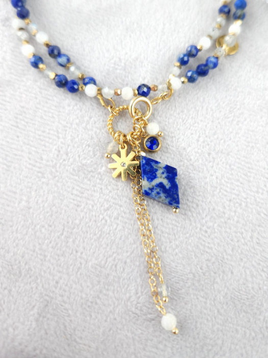 Lapis lazuli, labradoryt, kamień księżycowy, hematyt, stal