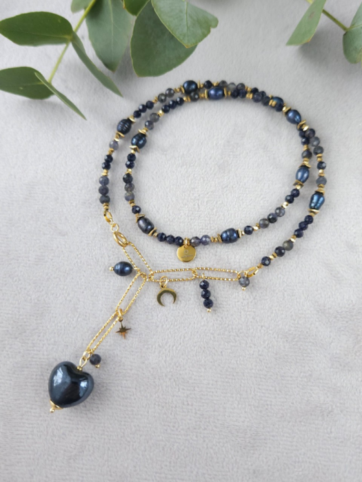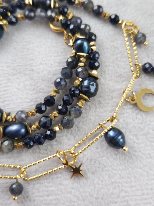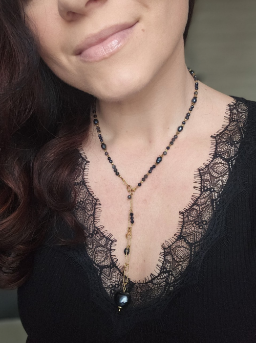 Iolit, noc kairu, perła, ceramiczna zawieszka, hematyt, stal