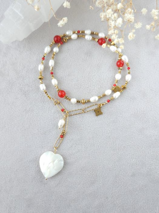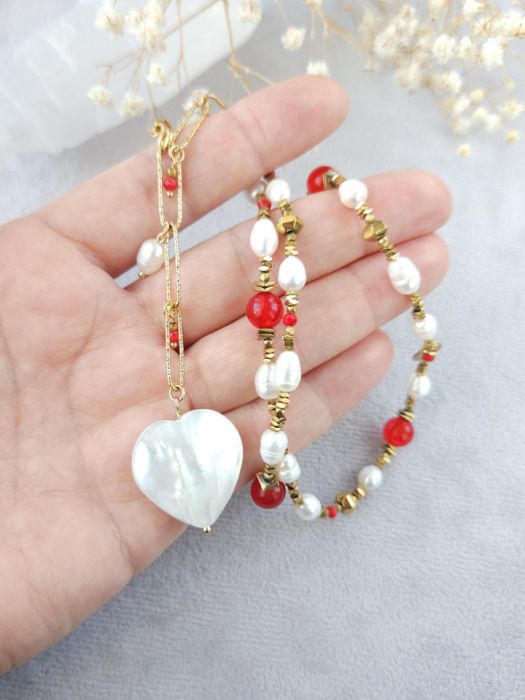 Perła naturalna, jadeit, koral, masa perłowa, hematyt, stal