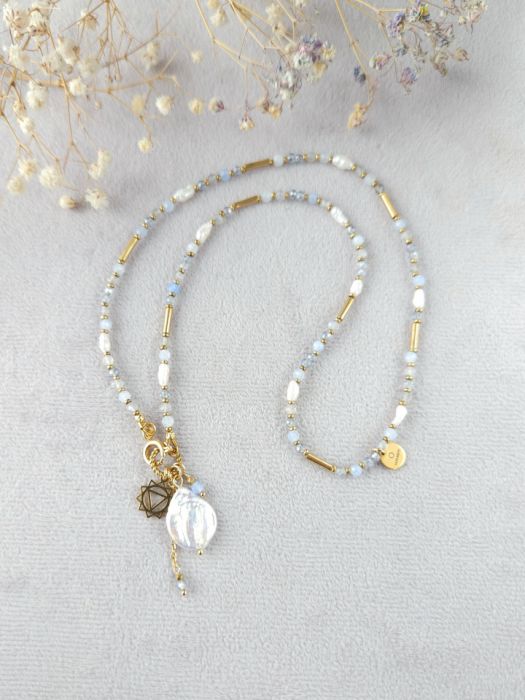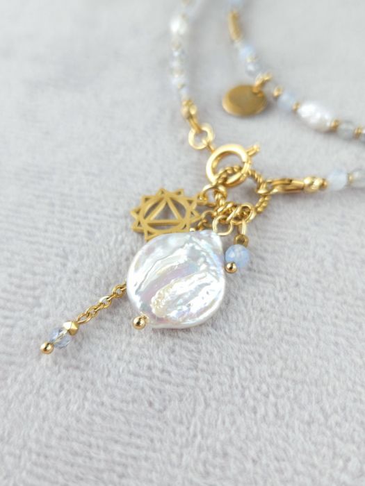 Naszyjnik Soft Pearl z akwamarynu, labradorytu, pereł, szarego spinelu, hematytu i stali