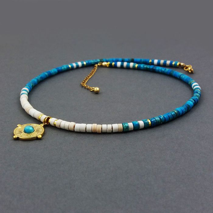 Zadaj pytanie dotyczące produktu: Naszyjnik turkusowo biały.