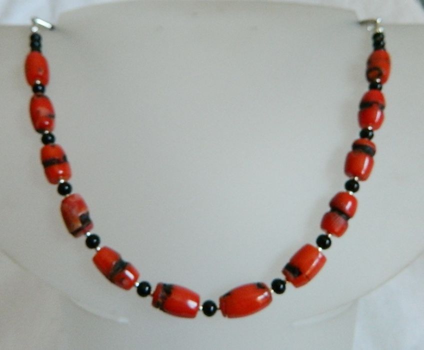 Zadaj pytanie dotyczące produktu: Naturalny czerwony koral robaczywka i onyks, unikatowy naszyjnik