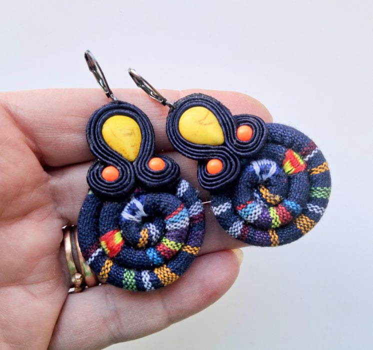 Kolczyki wykonane w modnej technice haftu sutaszowego. Jest ona pracochłonna, ale daje piękne efekty.