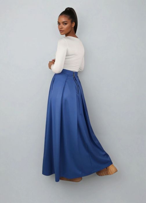 Elegancka spódnica maxi w kolorze niebieskim to doskonały wybór na rodzinne uroczystości, oficjalne spotkania a także do pracy.