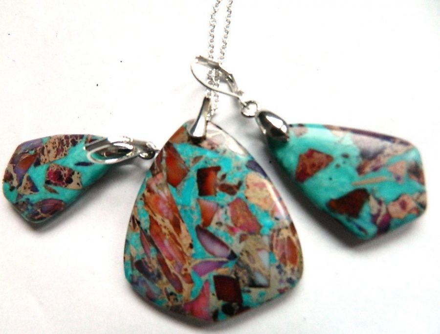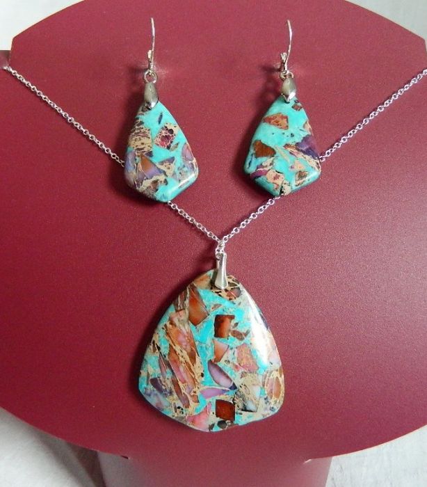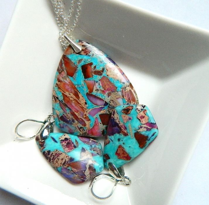 Zadaj pytanie dotyczące produktu: Niebieski jaspis cesarski i srebro, wisiorek i kolczyki, zestaw biżuterii