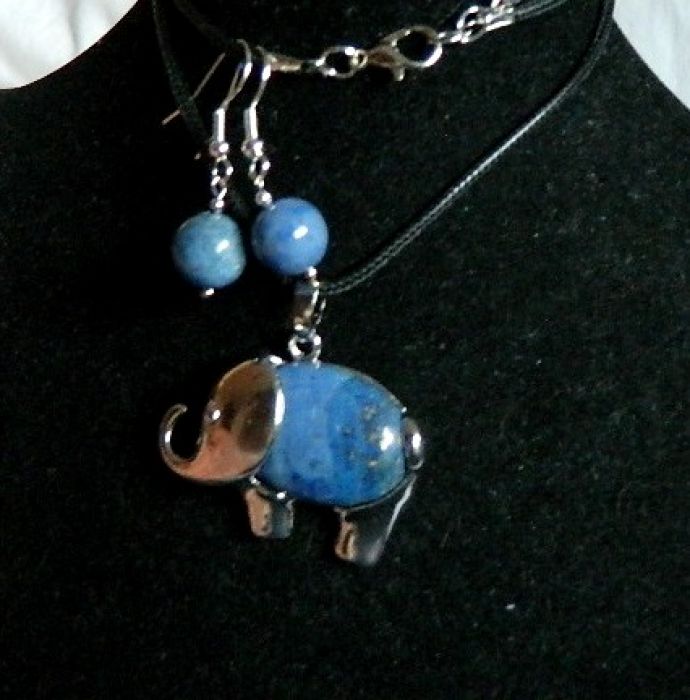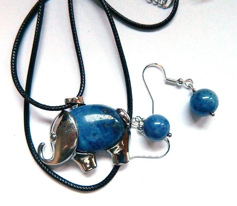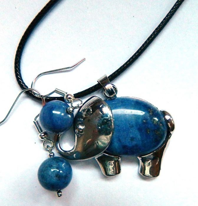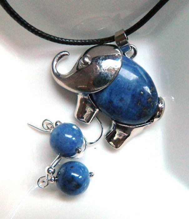 Zadaj pytanie dotyczące produktu: Niebieski sodalit, wisiorek ze słoniem i kolczyki, komplet biżuterii