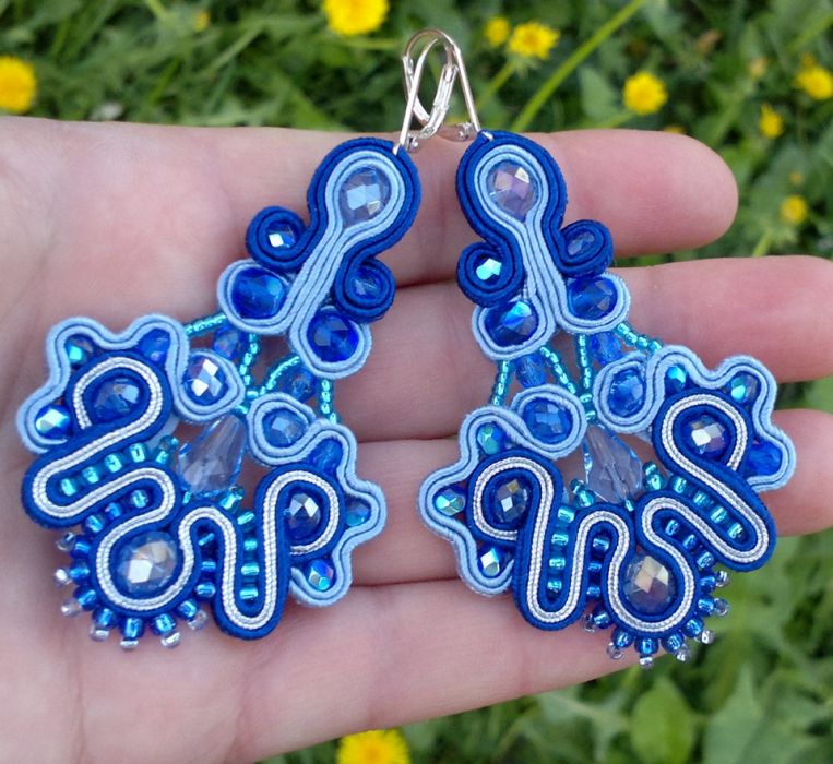 Piękne, lśniące i efektowne kolczyki zostały wykonane ręcznie techniką haftu sutasz. Robią wielkie wrażenie!
