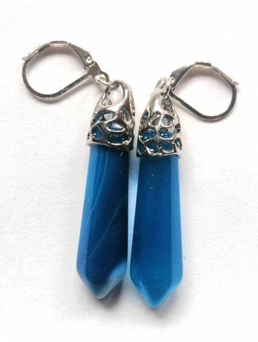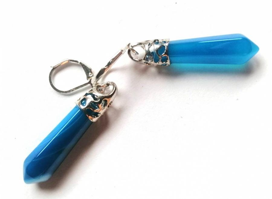 Zadaj pytanie dotyczące produktu: Niebieskie agaty i srebro, długie, wiszące kolczyki