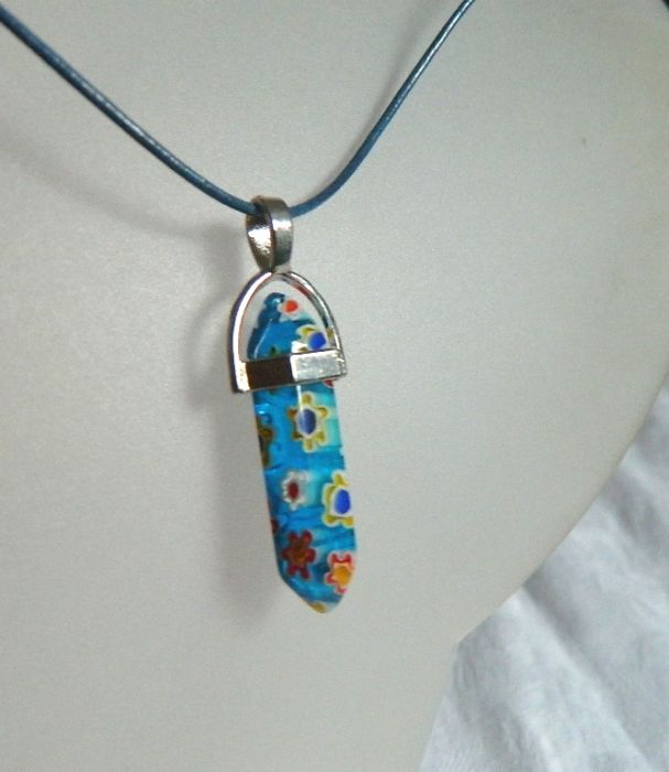 Zadaj pytanie dotyczące produktu: Niebieskie szkło weneckie - Millefiori, wisiorek na rzemyku