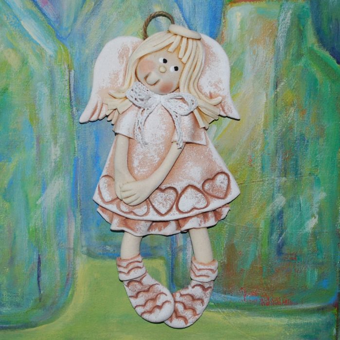 Zadaj pytanie dotyczące produktu: Nieśmiało się uśmiecham - aniołek z masy solnej, prezent, dekoracja