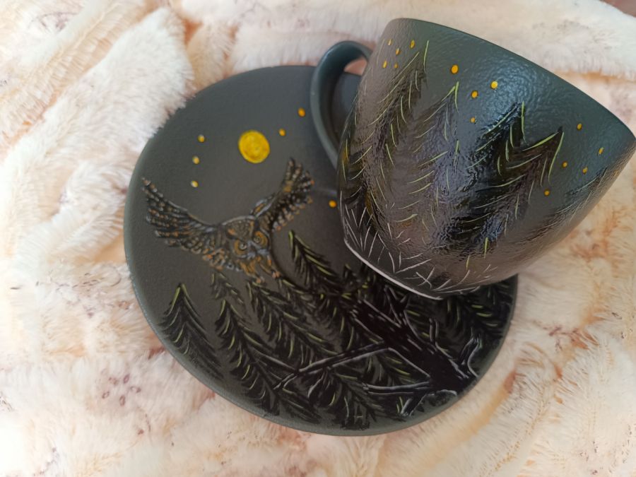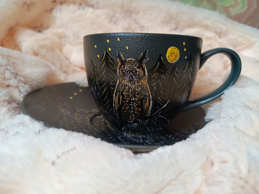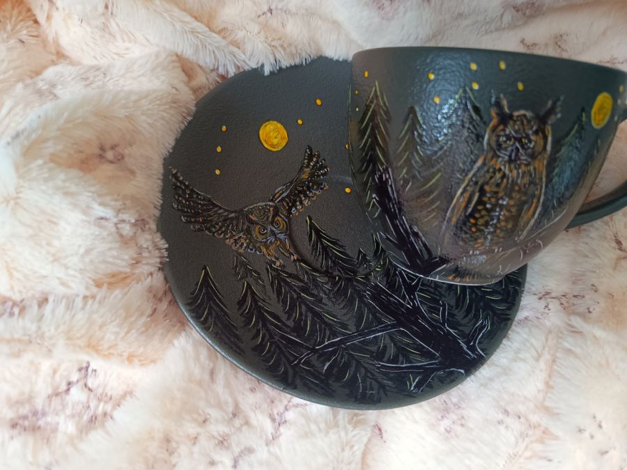 Unikalny komplet z nocnymi sowami, komplet storzony z myślą o osobach lubiących nocny tryb życia, mądrych, kochających naturę i widzących piękno w naturze i przyrodzie nawet tej nocnej.