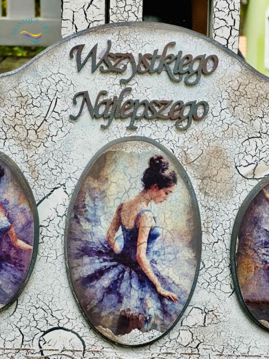 Nazwa produktu: Obraz dekoracyjny z motywem baletnic z życzeniami „Wszystkiego najlepszego”