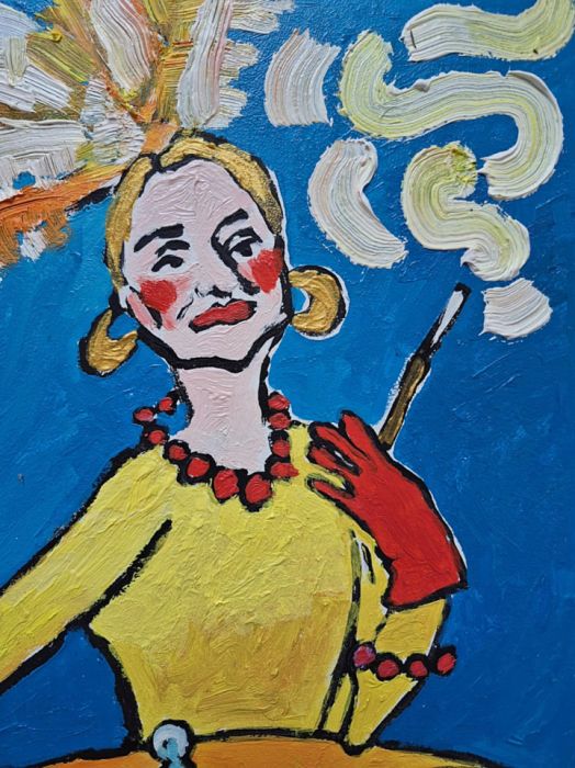 Nazwa produktu: wesoły obraz olejny babcia z drinkiem