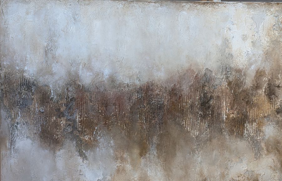 Obraz strukturalny wykonany ręcznie, z wyraźną, trójwymiarową fakturą budowaną warstwowo. Każdy element został stworzony autorską techniką, dzięki czemu obraz ma niepowtarzalną strukturę i charakter.