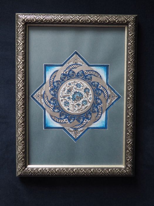 Ręcznie malowana mandala wzorowana na dziełach klasycznej sztuki wschodniej.