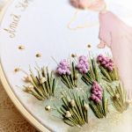 Kwiaty są ręcznie wyszywane, dodatkowo ozdobione mieniącym się złotkiem.