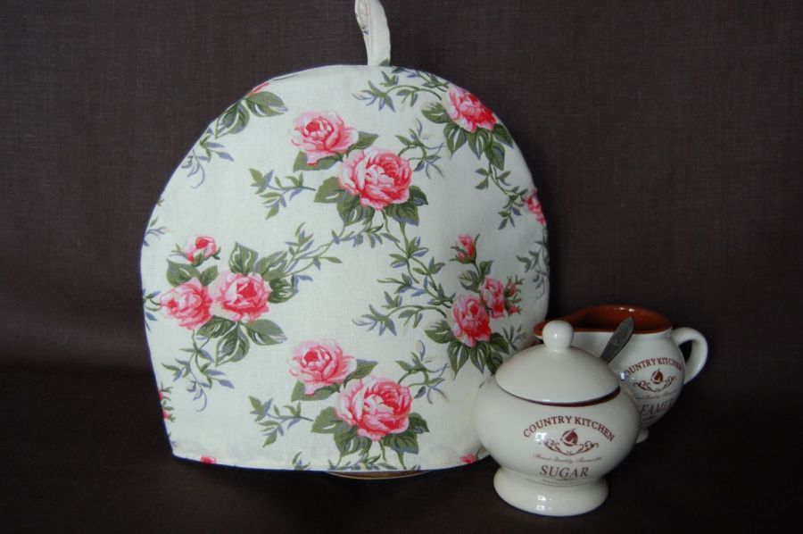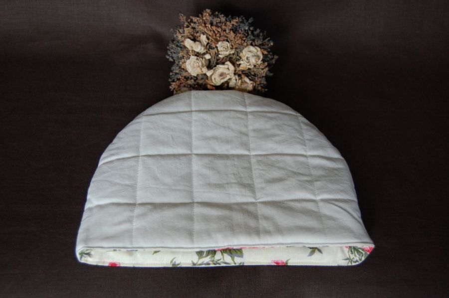 Ocieplacz/osłonka na czajnik "Angielskie róże" - wykonany z pięknej 100% bawełny z motywem róż. Spód/środek wykonany z bawełnianej podszewki, przepikowanej w kwadraty razem z ociepliną.