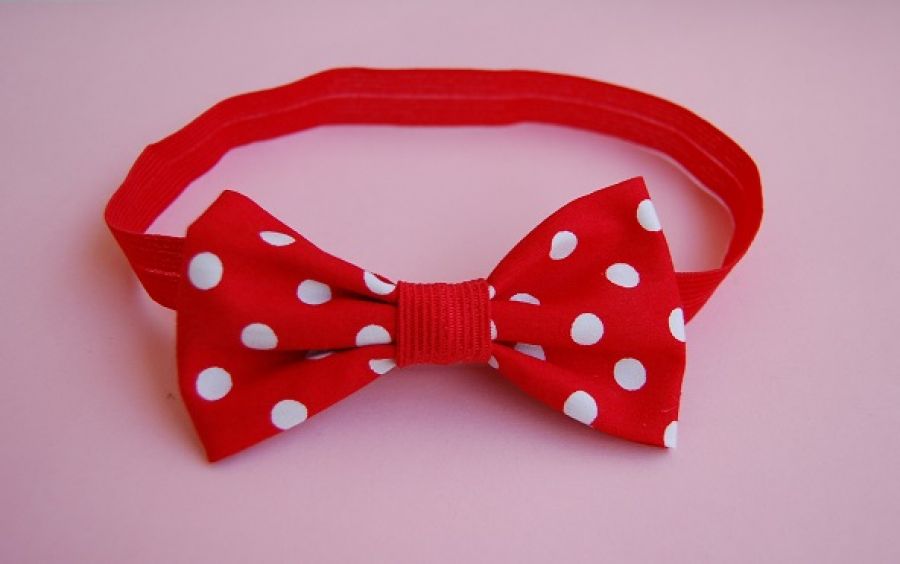 Opaska niemowlęca "Myszka Miki" - opaska do włosów, ozdobiona czerwoną kokardą w białe kropki. Opaska wykonana na elastycznej, bardzo rozciągliwej, czerwonej gumeczce.