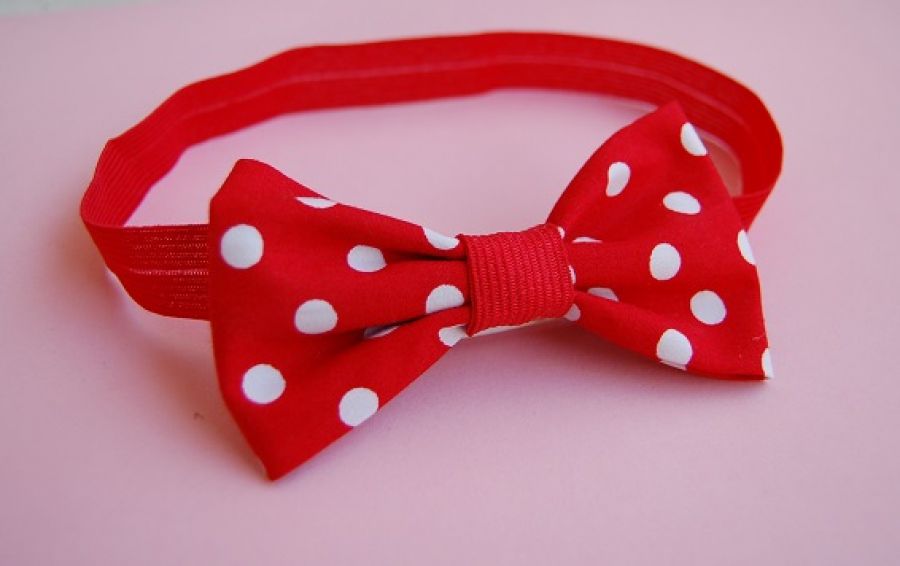 Opaska niemowlęca "Myszka Miki" - opaska do włosów, ozdobiona czerwoną kokardą w białe kropki. Opaska wykonana na elastycznej, bardzo rozciągliwej, czerwonej gumeczce.