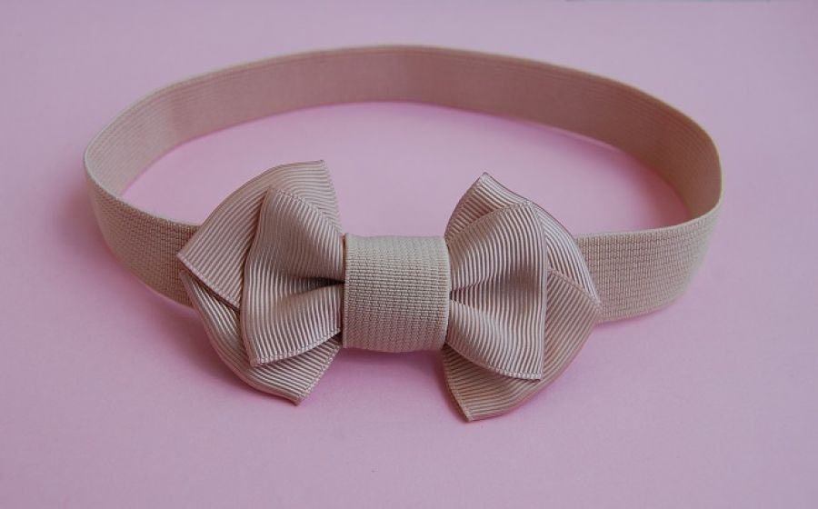 Opaska niemowlęca "Na beżowo" - opaska do włosów ozdobiona trzywarstwową kokardą z rypsowej taśmy w beżowym kolorze. Opaska wykonana na elastycznej, rozciągliwej gumeczce w pastelowym, beżowym kolorze.