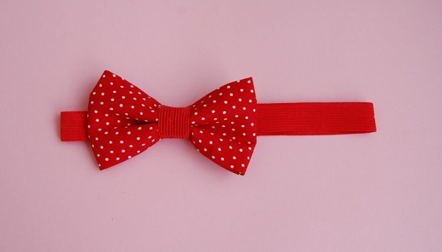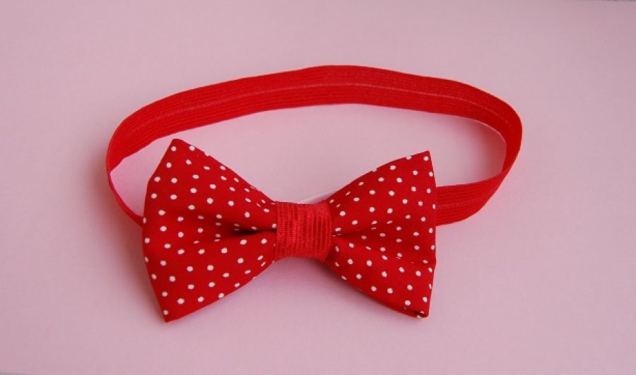 Opaska niemowlęca "Zakrapiana" - opaska do włosów, ozdobiona czerwoną kokardą w białe groszki. Opaska wykonana na elastycznej, bardzo rozciągliwej, czerwonej gumeczce.